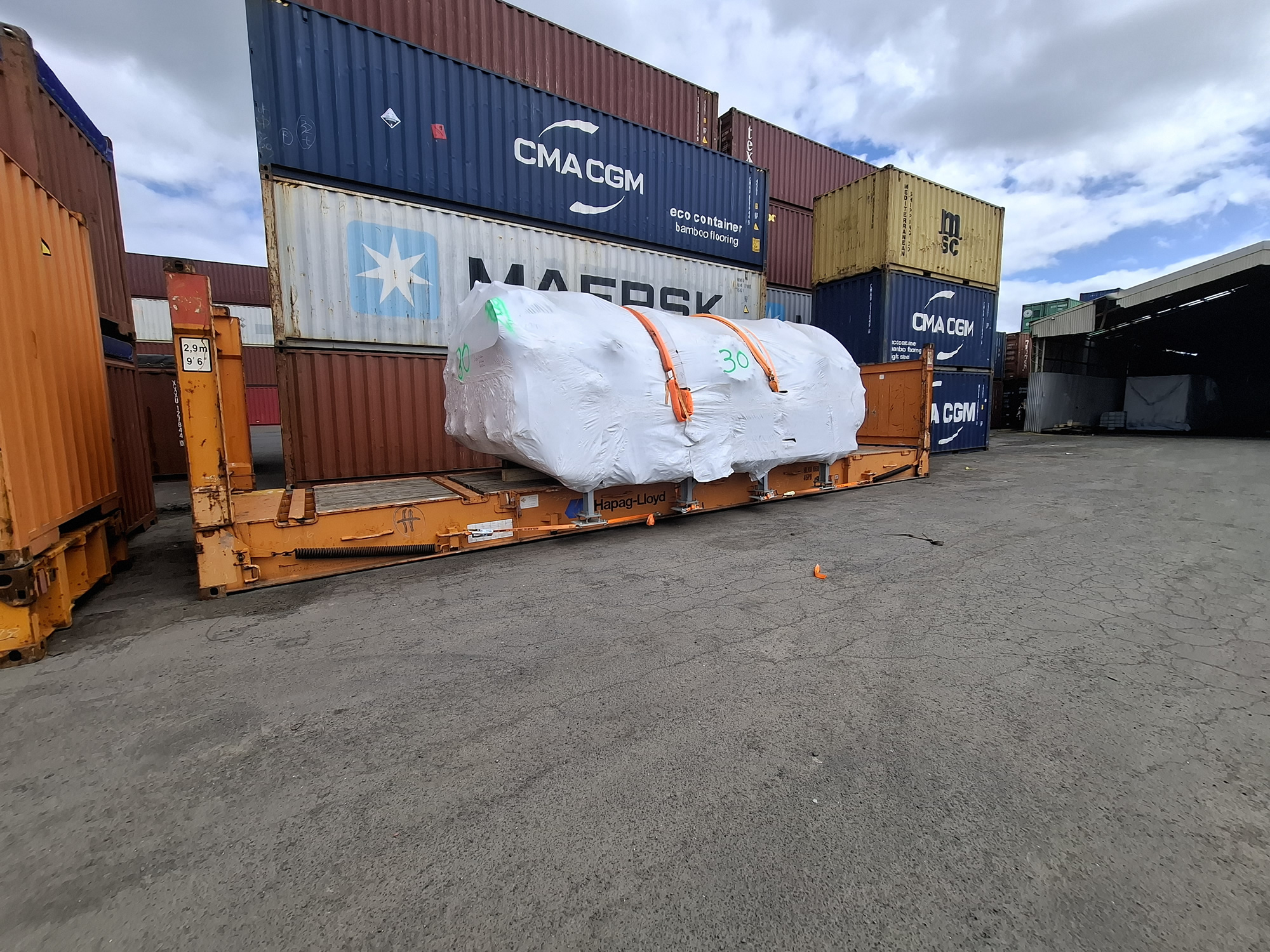 The project involved packing 115 individual items into a mix of standard containers, open tops, and two oversized auto-clave sections shipped as OOG flatracks. Particular care was taken by our on-site packing team to optimise container space and reduce the total number of containers, delivering cost efficiency for the customer. Working within an active factory environment, the team overcame challenges to minimize disruption to daily operations while maintaining strict safety standards.